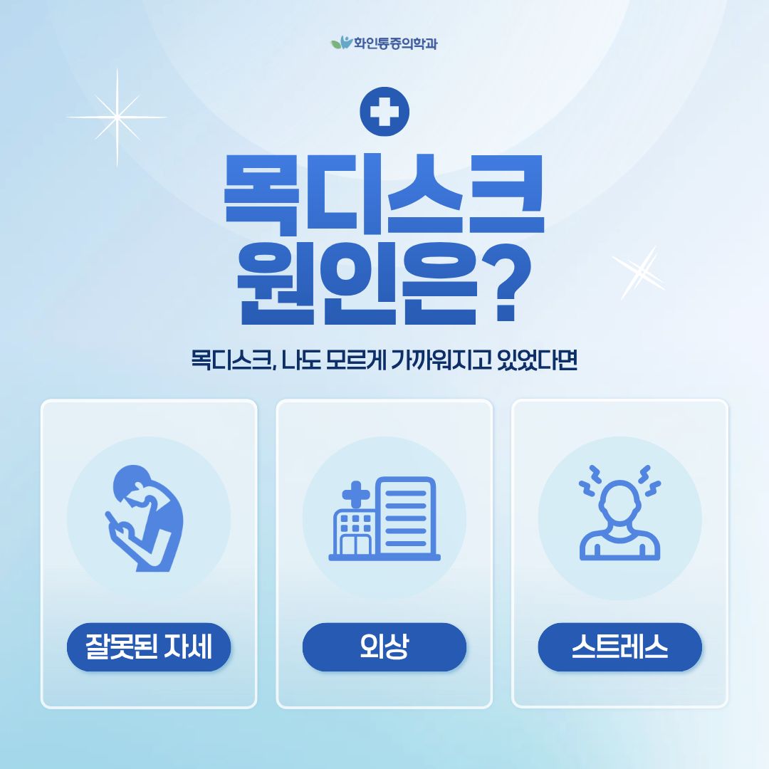 목디스크는 특별한 외상이 없어도 일상 속 습관과 자세에서 비롯되는 경우가 많습니다.