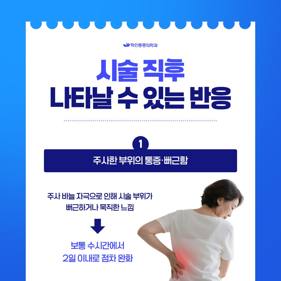 | 통증의학과 허리 주사 후 생길 수 있는 통증 반응과 부작용, 관리법 |